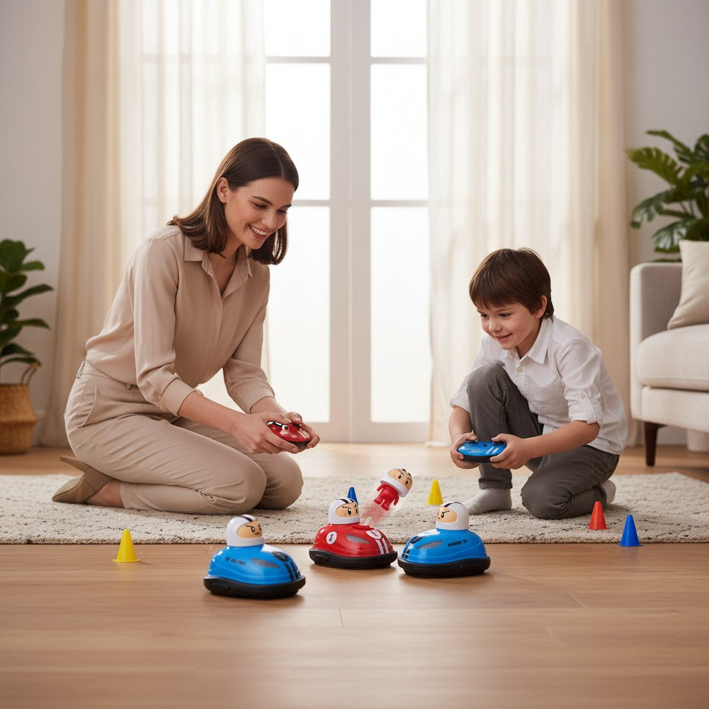 Nos voitures télécommandées auto-tamponneuses sont conçues pour rassembler la famille. Vous pouvez organiser des courses, des défis ou simplement profiter du spectacle hilarant des collisions. C'est une excellente alternative aux écrans, favorisant des interactions réelles et des souvenirs durables.